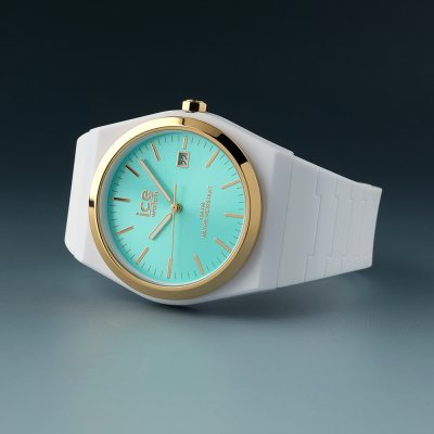 Diese Ice-Watch Uhr hat ein Kunstharz Gehäuse mit einem Durchmesser von 41 mm und ist mit einem Armband aus Kautschuk versehen. In der Uhr arbeitet ein Ronda Uhrwerk. Das Glas der Uhr besteht aus Sapphir - Glas.