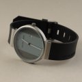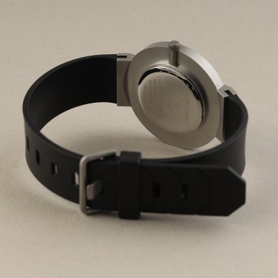Diese Jacob Jensen Uhr hat ein Edelstahl Gehäuse mit einem Durchmesser von 35 mm und ist mit einem Armband aus Kautschuk versehen.