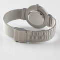 Diese Jacob Jensen Uhr hat ein Edelstahl Gehäuse mit einem Durchmesser von 35 mm und ist mit einem Armband aus Edelstahl versehen. In der Uhr arbeitet ein Ronda Uhrwerk. Das Glas der Uhr besteht aus Mineral - Glas.