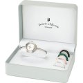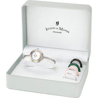 Diese Jacques du Manoir Uhr hat ein Edelstahl Gehäuse mit einem Durchmesser von 26 mm und ist mit einem Armband aus Edelstahl versehen. In der Uhr arbeitet ein Ronda Uhrwerk. Das Glas der Uhr besteht aus Mineral - Glas.