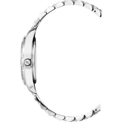 Diese Jacques du Manoir Uhr hat ein Edelstahl Gehäuse mit einem Durchmesser von 34 mm und ist mit einem Armband aus Edelstahl versehen. In der Uhr arbeitet ein Ronda Uhrwerk. Das Glas der Uhr besteht aus Mineral - Glas.