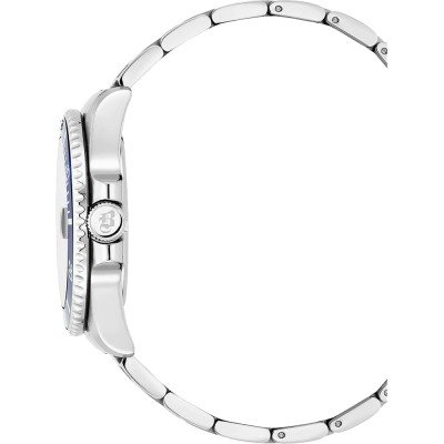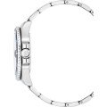 Diese Jacques du Manoir Uhr hat ein Edelstahl Gehäuse mit einem Durchmesser von 43 mm und ist mit einem Armband aus Edelstahl versehen. In der Uhr arbeitet ein Ronda Uhrwerk. Das Glas der Uhr besteht aus Mineral - Glas.