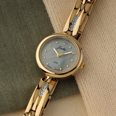 Diese Joalia Uhr hat ein Metalllegierung Gehäuse mit einem Durchmesser von 24 mm und ist mit einem Armband aus Metalllegierung versehen. In der Uhr arbeitet ein Seiko Instruments Inc. Uhrwerk. Das Glas der Uhr besteht aus Mineral - Glas.