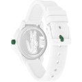 Diese Lacoste Uhr hat ein Kunstharz Gehäuse mit einem Durchmesser von 32 mm und ist mit einem Armband aus Kautschuk versehen. In der Uhr arbeitet ein Seiko Instruments Inc. Uhrwerk. Das Glas der Uhr besteht aus Mineral - Glas.