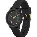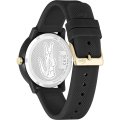 Diese Lacoste Uhr hat ein Kunstharz Gehäuse mit einem Durchmesser von 42 mm und ist mit einem Armband aus Kautschuk versehen. In der Uhr arbeitet ein Seiko Uhrwerk. Das Glas der Uhr besteht aus Mineral - Glas.