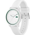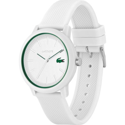 Diese Lacoste Uhr hat ein Kunstharz Gehäuse mit einem Durchmesser von 42 mm und ist mit einem Armband aus Kautschuk versehen. In der Uhr arbeitet ein Seiko Uhrwerk. Das Glas der Uhr besteht aus Mineral - Glas.