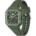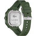 Diese Lacoste Uhr hat ein Kunstharz Gehäuse mit einem Durchmesser von 44 mm und ist mit einem Armband aus Kautschuk versehen.