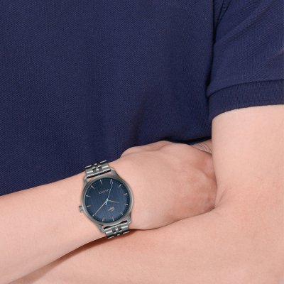 Diese Lacoste Uhr hat ein Edelstahl Gehäuse mit einem Durchmesser von 42 mm und ist mit einem Armband aus Edelstahl versehen. In der Uhr arbeitet ein Seiko Uhrwerk. Das Glas der Uhr besteht aus Mineral - Glas.