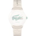 Dieses Lacoste Uhrarmband ist aus silikon gefertigt und wird mit druckstifte an der Uhr befestigt. Das Band hat eine Breite von 19 mm und wird mit einer dornschließe geschlossen. Das Band hat eine gerade Halterung, was bedeutet, dass dieses Band für alle Lacosteuhren mit einer geraden Halterung geeignet ist.