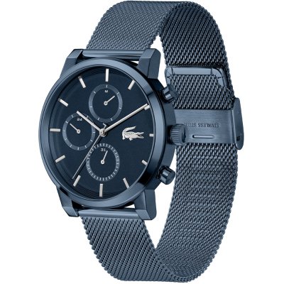 Diese Lacoste Uhr hat ein Edelstahl Gehäuse mit einem Durchmesser von 44 mm und ist mit einem Armband aus Edelstahl versehen. In der Uhr arbeitet ein Seiko Instruments Inc. Uhrwerk. Das Glas der Uhr besteht aus Mineral - Glas.