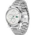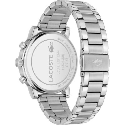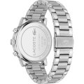 Diese Lacoste Uhr hat ein Edelstahl Gehäuse mit einem Durchmesser von 44 mm und ist mit einem Armband aus Edelstahl versehen. In der Uhr arbeitet ein Seiko Instruments Inc. Uhrwerk. Das Glas der Uhr besteht aus Mineral - Glas.
