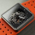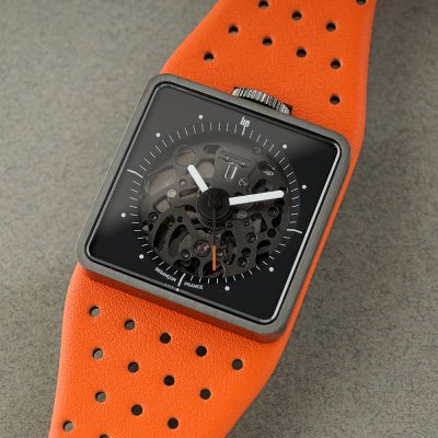 Der Vater des modernen französischen Designs, Roger Tallon, entwarf die Lip Big TV-Uhrenserie in den Neunzehnsiebzigern. Das stabile quadratische Gehäuse und das robuste Armband verleihen der Uhr einen Retro-Charakter, während gleichzeitig Designdetails wie die Krone, das Logo und das vertiefte Zifferblatt einen unverwechselbaren zeitlosen und modernen Reiz ausüben. Das jüngste Mitglied der Lip Big TV-Familie ist eine zeitgemäße Neuinterpretation mit einem Automatikwerk und einem Gehäuse aus Volltitan. Die Legierung verleiht ihr schlichte, reine Linien, wobei das Design des ursprünglichen Modells beibehalten wurde. Die skelettierte Version dieser Uhr verfügt über ein titanfarbenes Uhrwerk, das durch den transparenten Gehäuseboden zu bewundern ist.