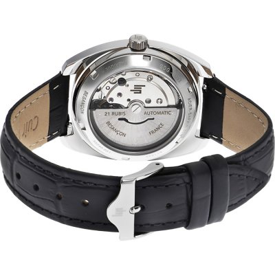 Diese LIP Uhr hat ein Edelstahl Gehäuse mit einem Durchmesser von 35 mm und ist mit einem Armband aus Leder versehen. In der Uhr arbeitet ein Miyota Uhrwerk. Das Glas der Uhr besteht aus Einfaches reflektionsfreies Saphirglas - Glas.