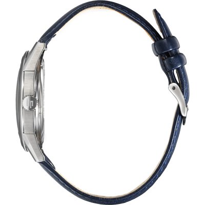 Diese LIP Uhr hat ein Edelstahl Gehäuse mit einem Durchmesser von 40 mm und ist mit einem Armband aus Leder versehen. In der Uhr arbeitet ein Ronda Uhrwerk. Das Glas der Uhr besteht aus Sapphir - Glas.