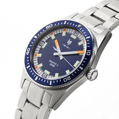 Diese LIP Uhr hat ein Edelstahl Gehäuse mit einem Durchmesser von 39 mm und ist mit einem Armband aus Edelstahl versehen. In der Uhr arbeitet ein Seiko Instruments Inc. Uhrwerk. Das Glas der Uhr besteht aus Einfaches reflektionsfreies Saphirglas - Glas.