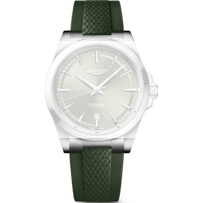 Dieses Longines Uhrarmband ist aus kautschuk gefertigt und wird mit druckstifte an der Uhr befestigt. Das Band hat eine Breite von 21 mm und wird mit einer faltschließe geschlossen. Das Band hat eine gerade Halterung, was bedeutet, dass dieses Band für alle Longinesuhren mit einer geraden Halterung geeignet ist.