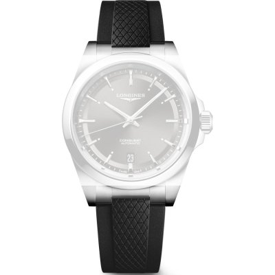 Dieses Longines Uhrarmband ist aus kautschuk gefertigt und wird mit druckstifte an der Uhr befestigt. Das Band hat eine Breite von 19 mm. Das Band hat eine gerade Halterung, was bedeutet, dass dieses Band für alle Longinesuhren mit einer geraden Halterung geeignet ist.