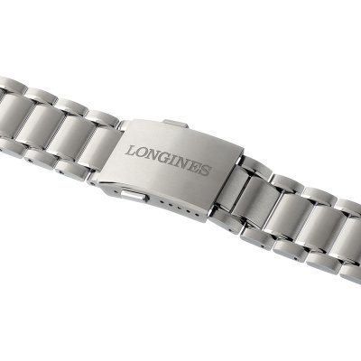 Dieses Longines Uhrarmband ist aus titan gefertigt und wird mit quick release Federsteg an der Uhr befestigt. Das Band hat eine Breite von 22 mm und wird mit einer faltschließe mit Druckknöpfen geschlossen. Das Uhrenarmband hat keine gerade Halterung, was bedeutet, dass dieses Band nur für die unten aufgeführten Uhren geeignet ist.