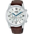 Diese Lorus Uhr hat ein Edelstahl Gehäuse mit einem Durchmesser von 42 mm und ist mit einem Armband aus Leder versehen. In der Uhr arbeitet ein Seiko Instruments Inc. Uhrwerk. Das Glas der Uhr besteht aus Mineral - Glas.