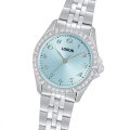 Diese Lorus Uhr hat ein Edelstahl Gehäuse mit einem Durchmesser von 30 mm und ist mit einem Armband aus Edelstahl versehen. In der Uhr arbeitet ein Seiko Instruments Inc. Uhrwerk. Das Glas der Uhr besteht aus Hardlex Glas - Glas.