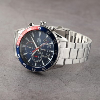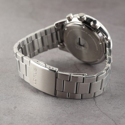 Diese Lorus Uhr hat ein Edelstahl Gehäuse mit einem Durchmesser von 45 mm und ist mit einem Armband aus Edelstahl versehen. In der Uhr arbeitet ein Seiko Instruments Inc. Uhrwerk. Das Glas der Uhr besteht aus Hardlex Glas - Glas.