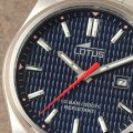 Diese Lotus Uhr hat ein Edelstahl Gehäuse mit einem Durchmesser von 42 mm und ist mit einem Armband aus Edelstahl versehen. In der Uhr arbeitet ein Miyota Uhrwerk. Das Glas der Uhr besteht aus Mineral - Glas.
