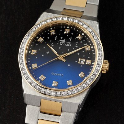 Diese Lotus Uhr hat ein Edelstahl Gehäuse mit einem Durchmesser von 31 mm und ist mit einem Armband aus Edelstahl versehen. In der Uhr arbeitet ein Miyota Uhrwerk. Das Glas der Uhr besteht aus Mineral - Glas.