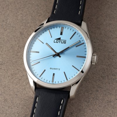 Diese Lotus Uhr hat ein Edelstahl Gehäuse mit einem Durchmesser von 42 mm und ist mit einem Armband aus Leder versehen. In der Uhr arbeitet ein Miyota Uhrwerk. Das Glas der Uhr besteht aus Mineral - Glas.