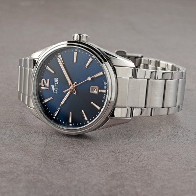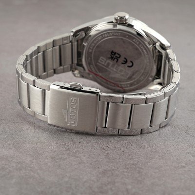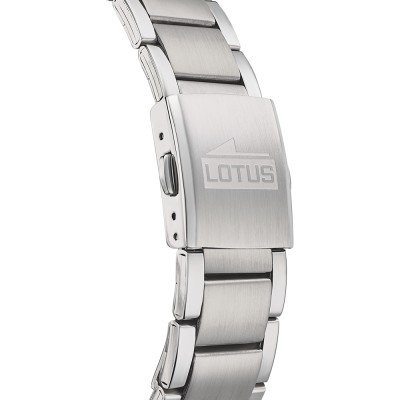 Diese Lotus Uhr hat ein Edelstahl Gehäuse mit einem Durchmesser von 42 mm und ist mit einem Armband aus Edelstahl versehen. In der Uhr arbeitet ein Miyota Uhrwerk. Das Glas der Uhr besteht aus Mineral - Glas.