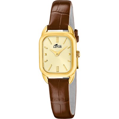 Diese Lotus Uhr hat ein Edelstahl Gehäuse mit einem Durchmesser von 26 mm und ist mit einem Armband aus Leder versehen. In der Uhr arbeitet ein Miyota Uhrwerk. Das Glas der Uhr besteht aus Mineral - Glas.