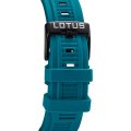 Diese Lotus Uhr hat ein Edelstahl Gehäuse mit einem Durchmesser von 46 mm und ist mit einem Armband aus Kautschuk versehen. In der Uhr arbeitet ein Miyota Uhrwerk. Das Glas der Uhr besteht aus Mineral - Glas.