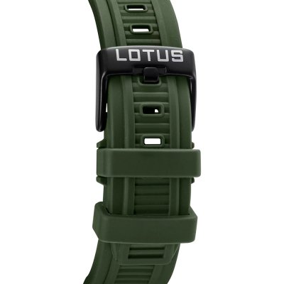 Diese Lotus Uhr hat ein Edelstahl Gehäuse mit einem Durchmesser von 46 mm und ist mit einem Armband aus Kautschuk versehen. In der Uhr arbeitet ein Miyota Uhrwerk. Das Glas der Uhr besteht aus Mineral - Glas.