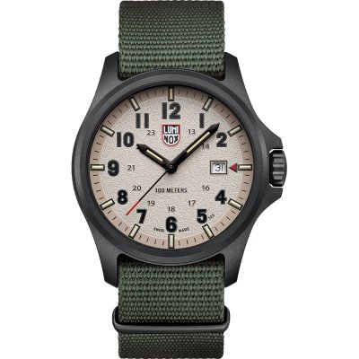 Diese Luminox Uhr hat ein Carbon Gehäuse mit einem Durchmesser von 43 mm und ist mit einem Armband aus Kautschuk versehen. In der Uhr arbeitet ein Ronda Uhrwerk. Das Glas der Uhr besteht aus Einfaches reflektionsfreies Saphirglas - Glas.
