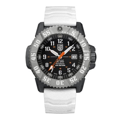 Diese Luminox Uhr hat ein Carbon Gehäuse mit einem Durchmesser von 46 mm und ist mit einem Armband aus Kautschuk versehen. In der Uhr arbeitet ein ETA Uhrwerk. Das Glas der Uhr besteht aus Einfaches reflektionsfreies Saphirglas - Glas.