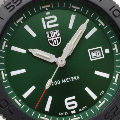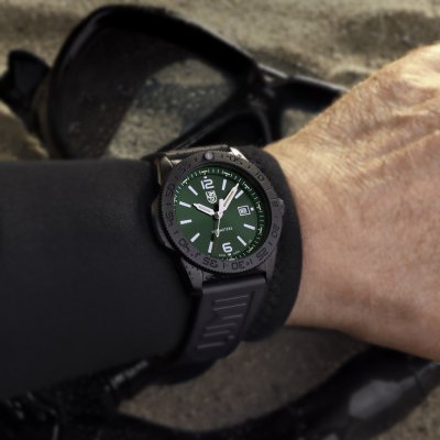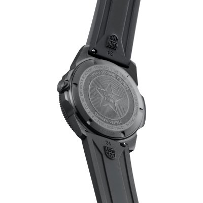 Diese Luminox Uhr hat ein Edelstahl Gehäuse mit einem Durchmesser von 44 mm und ist mit einem Armband aus Kautschuk versehen. In der Uhr arbeitet ein Ronda Uhrwerk. Das Glas der Uhr besteht aus Sapphir - Glas.