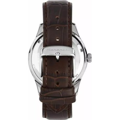 Diese Maserati Uhr hat ein Edelstahl Gehäuse mit einem Durchmesser von 42 mm und ist mit einem Armband aus Leder versehen. In der Uhr arbeitet ein Miyota Uhrwerk. Das Glas der Uhr besteht aus Mineral - Glas.