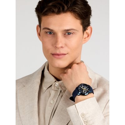 Diese Maserati Uhr hat ein Edelstahl Gehäuse mit einem Durchmesser von 42 mm und ist mit einem Armband aus Kautschuk versehen. In der Uhr arbeitet ein Miyota Uhrwerk. Das Glas der Uhr besteht aus Mineral - Glas.