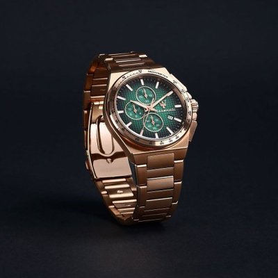 Diese Maserati Uhr hat ein Edelstahl Gehäuse mit einem Durchmesser von 41 mm und ist mit einem Armband aus Edelstahl versehen. In der Uhr arbeitet ein Miyota Uhrwerk. Das Glas der Uhr besteht aus Mineral - Glas.