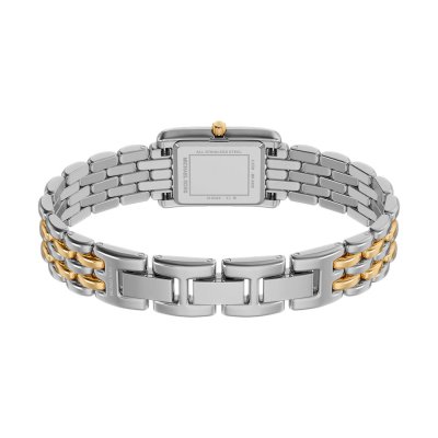 Diese Michael Kors Uhr hat ein Edelstahl Gehäuse mit einem Durchmesser von 20 mm und ist mit einem Armband aus Edelstahl versehen. In der Uhr arbeitet ein Seiko Instruments Inc. Uhrwerk. Das Glas der Uhr besteht aus Mineral - Glas.