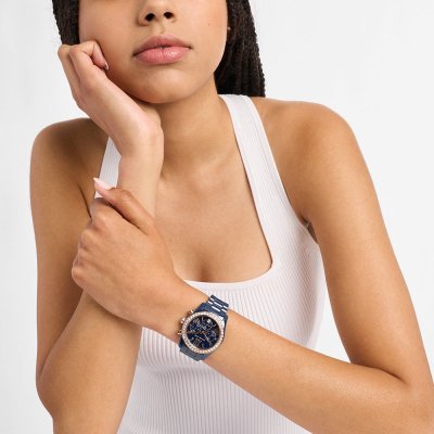 Diese Michael Kors Uhr hat ein Keramik Gehäuse mit einem Durchmesser von 38 mm und ist mit einem Armband aus Keramik versehen. In der Uhr arbeitet ein Miyota Uhrwerk. Das Glas der Uhr besteht aus Mineral - Glas.