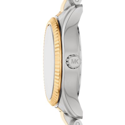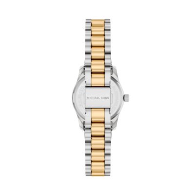 Diese Michael Kors Uhr hat ein Edelstahl Gehäuse mit einem Durchmesser von 26 mm und ist mit einem Armband aus Edelstahl versehen. In der Uhr arbeitet ein Seiko Instruments Inc. Uhrwerk. Das Glas der Uhr besteht aus Mineral - Glas.