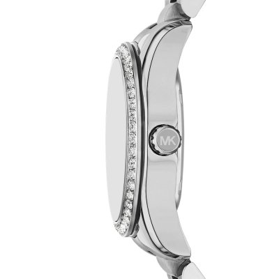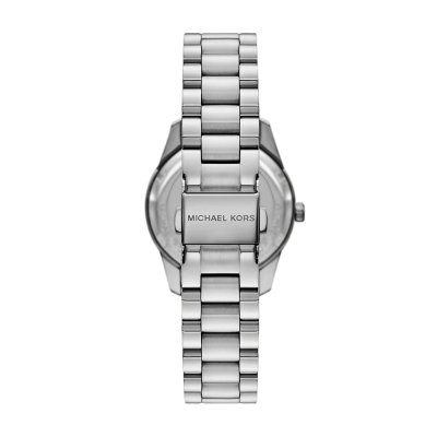 Diese Michael Kors Uhr hat ein Edelstahl Gehäuse mit einem Durchmesser von 34 mm und ist mit einem Armband aus Edelstahl versehen. In der Uhr arbeitet ein Miyota Uhrwerk. Das Glas der Uhr besteht aus Mineral - Glas.