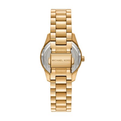 Diese Michael Kors Uhr hat ein Edelstahl Gehäuse mit einem Durchmesser von 34 mm und ist mit einem Armband aus Edelstahl versehen. In der Uhr arbeitet ein Miyota Uhrwerk. Das Glas der Uhr besteht aus Mineral - Glas.