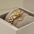Diese Michael Kors Uhr hat ein Edelstahl Gehäuse mit einem Durchmesser von 26 mm und ist mit einem Armband aus Edelstahl versehen. In der Uhr arbeitet ein Seiko Instruments Inc. Uhrwerk. Das Glas der Uhr besteht aus Mineral - Glas.