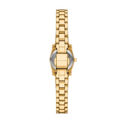 Diese Michael Kors Uhr hat ein Edelstahl Gehäuse mit einem Durchmesser von 19 mm und ist mit einem Armband aus Edelstahl versehen. In der Uhr arbeitet ein Seiko Instruments Inc. Uhrwerk. Das Glas der Uhr besteht aus Mineral - Glas.