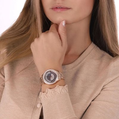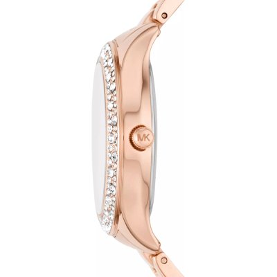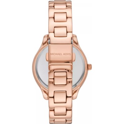 Diese Michael Kors Uhr hat ein Edelstahl Gehäuse mit einem Durchmesser von 36 mm und ist mit einem Armband aus Edelstahl versehen. In der Uhr arbeitet ein Miyota Uhrwerk. Das Glas der Uhr besteht aus Mineral - Glas.