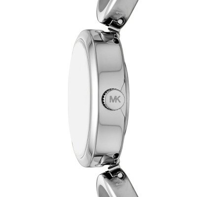 Diese Michael Kors Uhr hat ein Edelstahl Gehäuse mit einem Durchmesser von 21 mm und ist mit einem Armband aus Edelstahl versehen. In der Uhr arbeitet ein Seiko Instruments Inc. Uhrwerk. Das Glas der Uhr besteht aus Mineral - Glas.