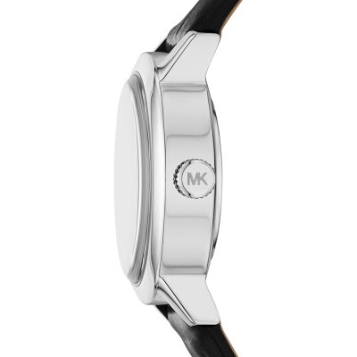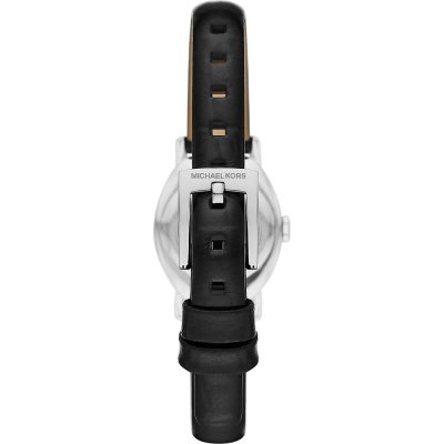 Diese Michael Kors Uhr hat ein Silber 925 Sterling Gehäuse mit einem Durchmesser von 21 mm und ist mit einem Armband aus Leder versehen. In der Uhr arbeitet ein Seiko Instruments Inc. Uhrwerk. Das Glas der Uhr besteht aus Mineral - Glas.