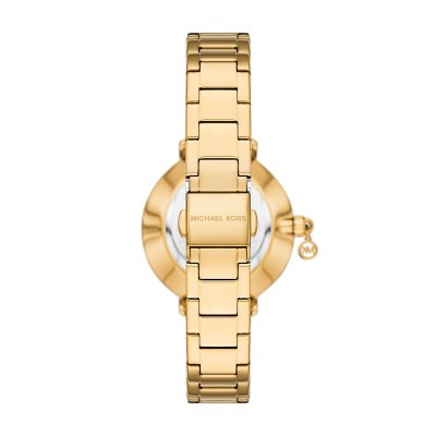 Diese Michael Kors Uhr hat ein Edelstahl Gehäuse mit einem Durchmesser von 32 mm und ist mit einem Armband aus Edelstahl versehen. In der Uhr arbeitet ein Seiko Instruments Inc. Uhrwerk. Das Glas der Uhr besteht aus Mineral - Glas.