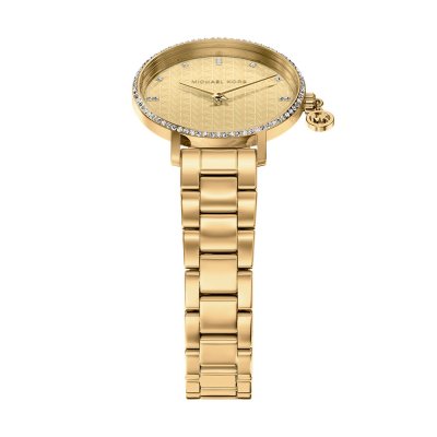 Diese Michael Kors Uhr hat ein Edelstahl Gehäuse mit einem Durchmesser von 32 mm und ist mit einem Armband aus Edelstahl versehen. In der Uhr arbeitet ein Seiko Instruments Inc. Uhrwerk. Das Glas der Uhr besteht aus Mineral - Glas.